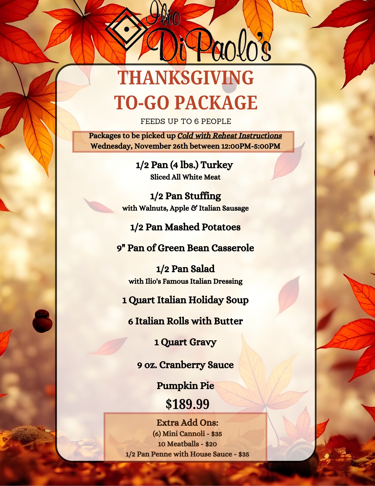 In 1965, Hall of Fame Wrestler Ilio DiPaolo opened the doors to what has become a Buffalo and Blasdell, NY tradition and one of the most popular Italian-American dining spots in Western New York. We continue to delight customers with Old-World Italian recipes, a warm family atmosphere and pleasant, professional service. We serve: