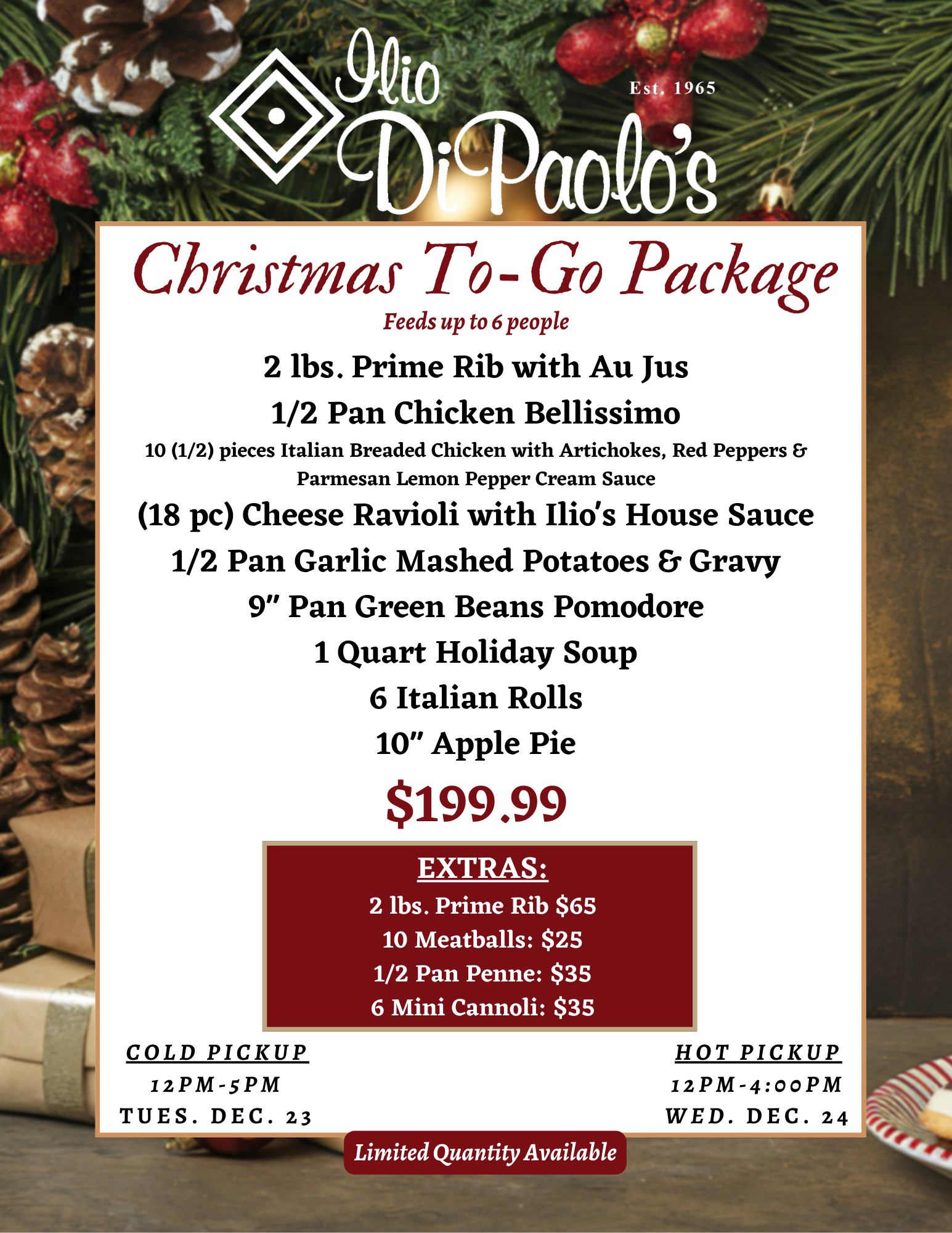 *If you'd like to place an order for dinner take-outs for Christmas Eve pick-up, please call (716) 825-3675 ext. 4.