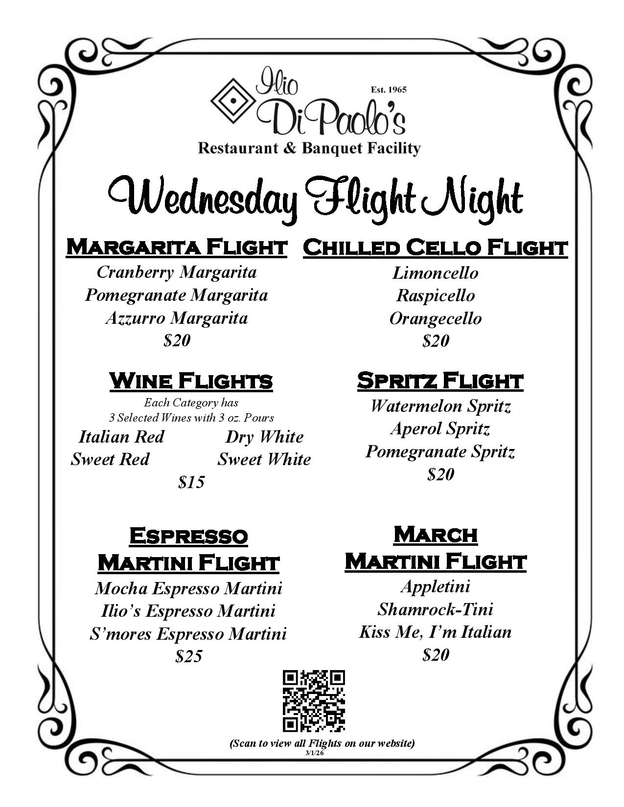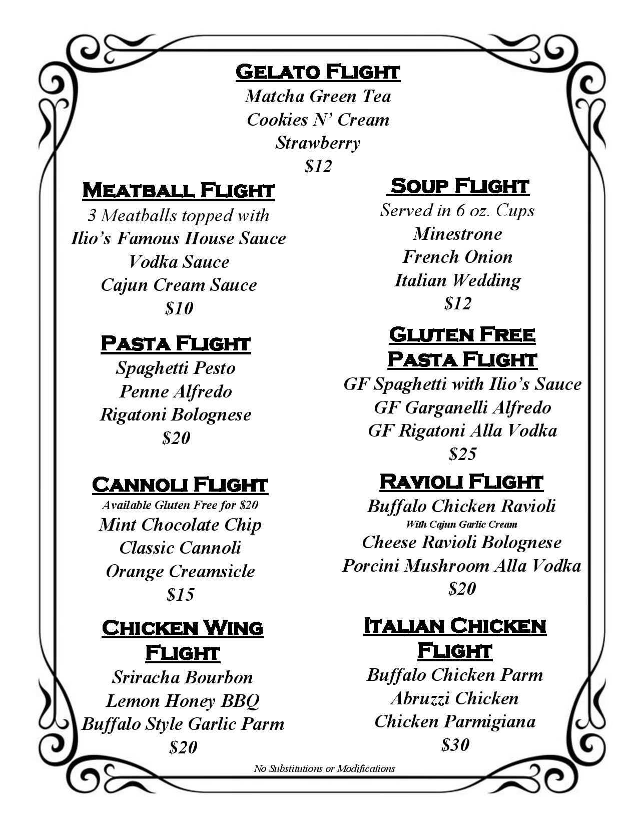 *Pasta Flight, Ravioli Flight & Chicken Flight come with choice of Soup or Salad!