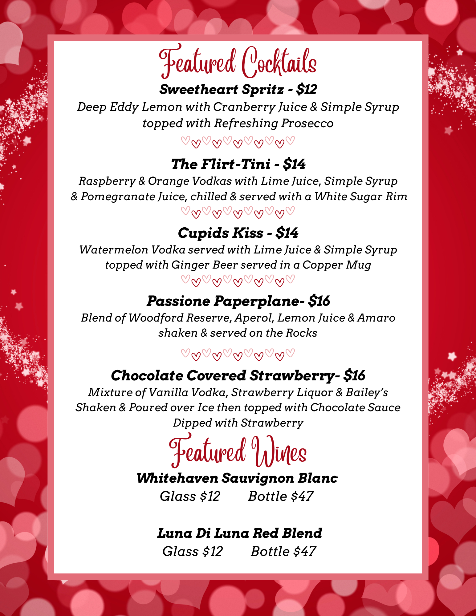 Valentine's Day Dinner for Two - Reservations highly recommended.